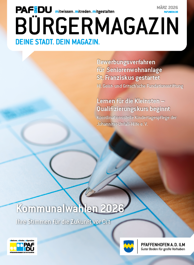 Die Kommunalwahlen 2026 stehen im Mittelpunkt der März-Ausgabe des PAFundDU-Bürgermagazins. Auch in Pfaffenhofen und im Landkreis entscheiden die Bürgerinnen und Bürger am 8. März darüber, wie ihre Stadt und Region in den kommenden sechs Jahren gestaltet werden. Wir erklären, warum diese Wahl wichtig ist, wer gewählt wird und vor allem wie Sie richtig wählen. Passend dazu blickt Stadtarchivar Andreas Sauer auf frühere Kommunalwahlen und die bereits damals hitzigen Wahlkämpfe zurück.